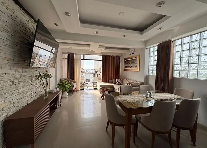 El alojamiento dispone de una cocina completa con hervidor eléctrico. A 5 minutos a pie, los huéspedes podrán comer en los restaurantes el Tostao Cafe Pasteleria y el Diverxo Gastrobar. El aeropuerto Chiclayo, situado a 5 km, es el más cercano al apartamento en Chiclayo. Apartamento Departamento En Exclusiva Zona tiene una terraza.